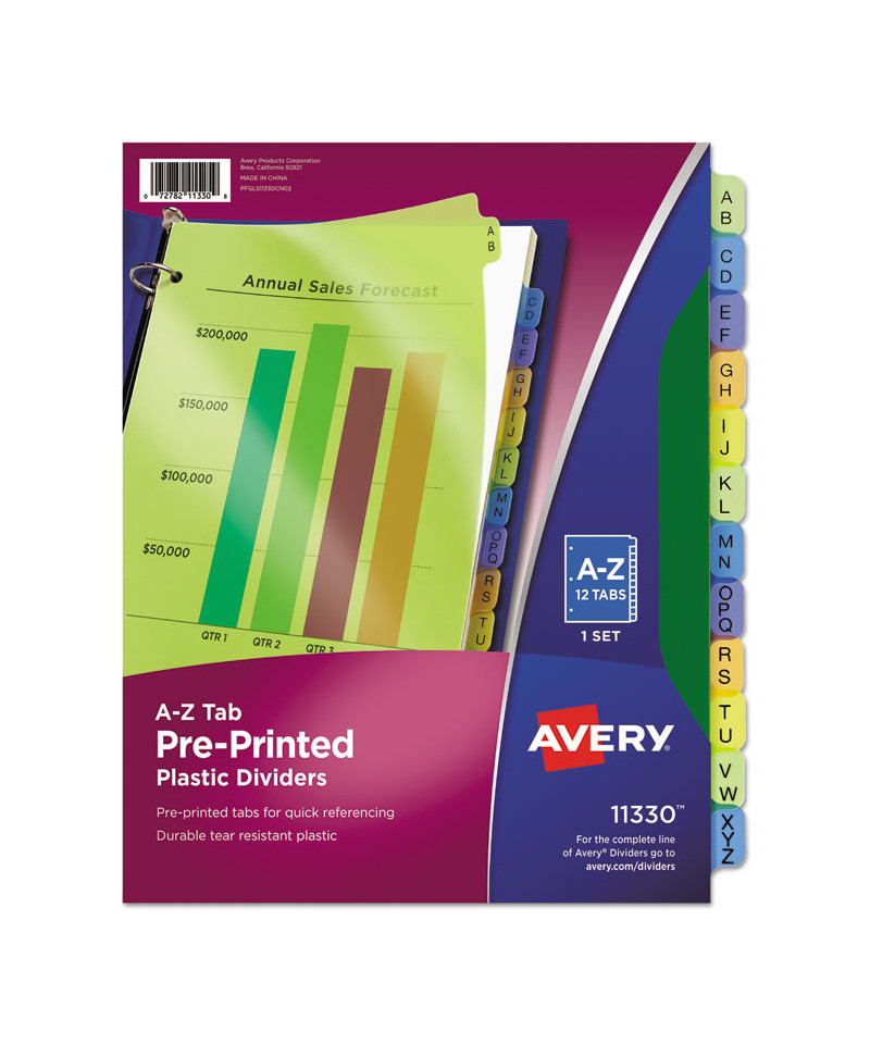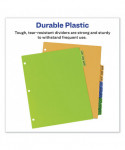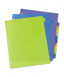 Get your papers organized in an instant. Our durable pre-printed plastic dividers help you get sorted as soon as you put them in your binder or notebook. Three-hole punched and ready-to-use, the dividers come with tabs pre-printed alphabetically or monthly so you can achieve fast organization. The sturdy plastic material offers a durable solution that lets you thumb through dividers again and again, and the assorted colors make it easy to find what you need. Getting organized is as easy as A B C.