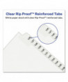 Use these dividers to organize index briefs, legal exhibits, mortgage documentation files and more. The crisp and clean white paper stock dividers give files a professional appearance. The durable Rip Proof™ reinforced tabs are preprinted on both sides so information can be located easily. The unpunched binding edges mean these indexes can fit practically any binding system.