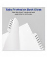 Use these dividers to organize index briefs, legal exhibits, mortgage documentation files and more. The crisp and clean white paper stock dividers give files a professional appearance. The durable Rip Proof™ reinforced tabs are preprinted on both sides so information can be located easily. The unpunched binding edges mean these indexes can fit practically any binding system.