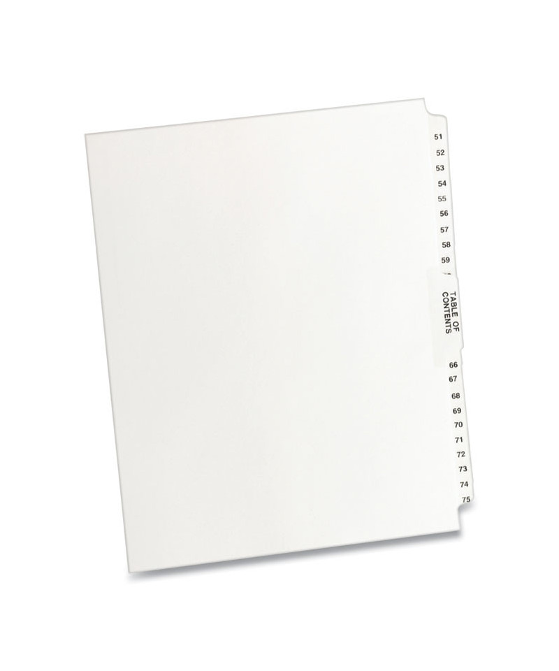 Use these dividers to organize index briefs, legal exhibits, mortgage documentation files and more. The crisp and clean white paper stock dividers give files a professional appearance. The durable Rip Proof™ reinforced tabs are preprinted on both sides so information can be located easily. The unpunched binding edges mean these indexes can fit practically any binding system.