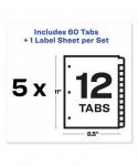 Print and Apply Index Maker Clear Label Dividers, 12-Tab, Color Tabs, 11 x 8.5, White, 5 Sets