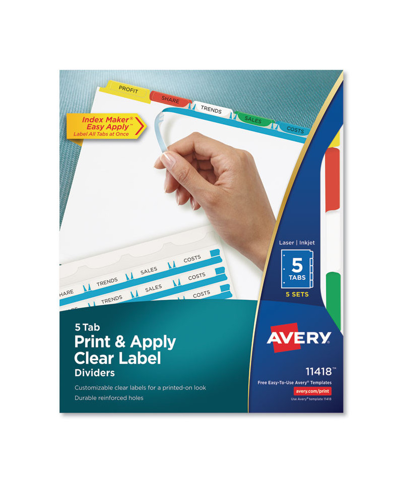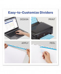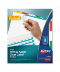 Organization is made easy with Index Maker® Dividers. Whether you're coordinating a single project or multiple binder sets, these dividers let you to get it done quickly and easily, with professional results. The clear labels virtually disappear on the tabs, giving your dividers a clean, printed-on look. Save time with the Easy Apply strip that lets you label all the tabs at once, making it simple to create custom dividers right from your desktop. Just use the free templates from Avery Design & Print and you can personalize and print your Easy Apply tab labels in minutes. With these dividers you get a professional, easy-to-use solution to keep all your projects organized. For laser and inkjet printers.