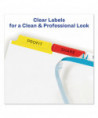 Organize and find reference or presentation materials more quickly with customizable color tabs! Clear labels virtually disappear when applied to tabs. Use the Easy Apply strip to label all the tabs at once. Easy to customize with free templates and designs from Avery Design & Print. For laser and inkjet printers.