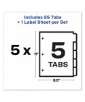 Includes five sets of 5-tab dividers