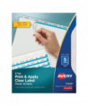 Whether you're organizing one project or creating multiple binders for a meeting or event, Index Maker® Dividers let you to get it done quickly and easily, with professional results. Durable clear or colored plastic dividers add impact while making it easier to flip between sections. The clear labels virtually disappear on the tabs, giving your dividers a clean, printed-on look. Save time with the Easy Apply™ strip that lets you label all the tabs at once, making it simple to create custom dividers right from your desktop. Just use the free templates from Avery Design & Print and you can personalize and print your Easy Apply™ tab labels in minutes. These versatile dividers are the easy-to-use solution for your organizational needs. For laser and inkjet printers.