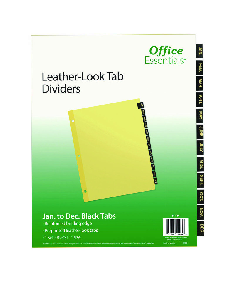 Preprinted Black Leather Tab Dividers, 12-Tab, Jan. to Dec., 11 x 8.5, Buff, 1 Set