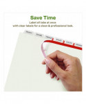 Whether you're coordinating a single project or multiple binder sets, these dividers let you to get it done quickly and easily, with professional results. The clear labels virtually disappear on the tabs, giving your dividers a clean, printed-on look. Save time with the Easy Apply strip that lets you label all the tabs at once, making it simple to create custom dividers right from your desktop. Just use the free templates from Avery Design & Print and you can personalize and print your Easy Apply tab labels in minutes. These dividers are the professional solution for all your organizational needs. For laser and inkjet printers.