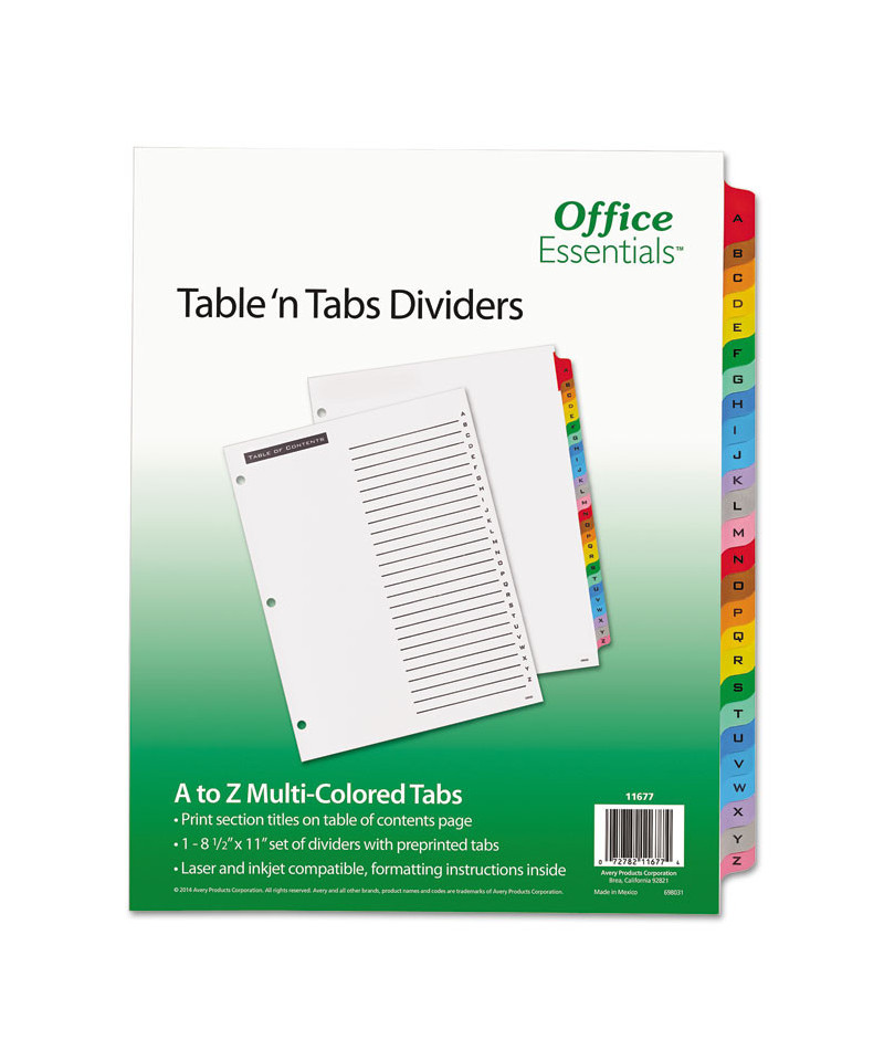 Quick to organize, quick to reference. Economical white dividers for a variety of binder organization needs. Just print section titles on Table of Contents page that is color-coded to match pre-printed tabs. For use in standard three-ring binders.