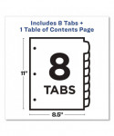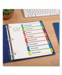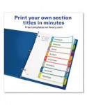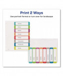 Organized documentation makes a business run like a well-oiled machine. These Ready Index Table of Contents Dividers help you stay organized so you can locate documents quickly and efficiently. They feature preprinted multicolor tabs that can be displayed in either landscape or portrait format. Using free templates from Avery Design & Print you can customize the included table of contents page and print in minutes. Organization and efficiency-makes life better for your business. For laser and inkjet printers.