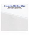 Use these dividers to organize index briefs, legal exhibits, mortgage documentation files and more. The crisp and clean white paper stock dividers give files a professional appearance. The durable Rip Proof™ reinforced tabs are preprinted on both sides so information can be located easily. The unpunched binding edges mean these indexes can fit practically any binding system.
