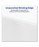 Use these dividers to organize index briefs, legal exhibits, mortgage documentation files and more. The crisp and clean white paper stock dividers give files a professional appearance. The durable Rip Proof™ reinforced tabs are preprinted on both sides so information can be located easily. The unpunched binding edges mean these indexes can fit practically any binding system.