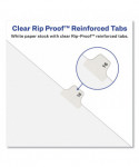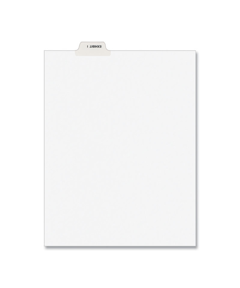 Rip Proof™ reinforced tabs printed on both sides with exhibit letter. Easy-to-read Helvetica bold type stands out. Unpunched for flexibility in binding.