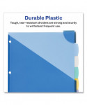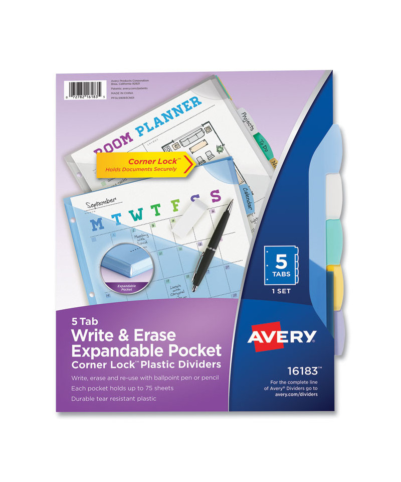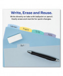 Get your binder organization on the right track with these Durable Plastic Write-On Dividers. The stylish tab design offers plenty of room for you to label each divider for reference at a glance. Stylishly shaped Big Tab™ Dividers are larger, providing 50% more writing space than standard tabs. Using your ballpoint pen or pencil, you can customize your dividers easily. To reuse, simply erase your previous label and write in the new one. Use the Corner Lock™ With Expandable Pocket or slash pockets for storage. Plastic dividers also available in large 11" x 17" and mini size. You'll be on the road to better organization with these dividers.