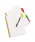 Bigger tabs provide 50% more writing space. Write on the laminated tab with virtually any instrument; to reuse, just erase and write again. Use ball point pens and pencils for best performance. Gold line reinforced binding edge for tear resistance at binder holes.