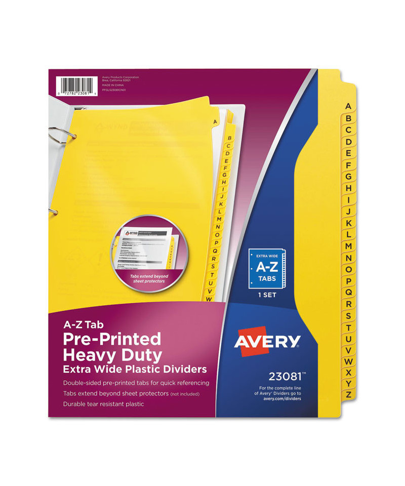 Get your papers organized in an instant. Our durable pre-printed plastic dividers help you get sorted as soon as you put them in your binder or notebook. Three-hole punched and ready-to-use, the dividers come with tabs pre-printed alphabetically or monthly so you can achieve fast organization. The sturdy plastic material offers a durable solution that lets you thumb through dividers again and again, and the assorted colors make it easy to find what you need. Getting organized is as easy as A B C.
