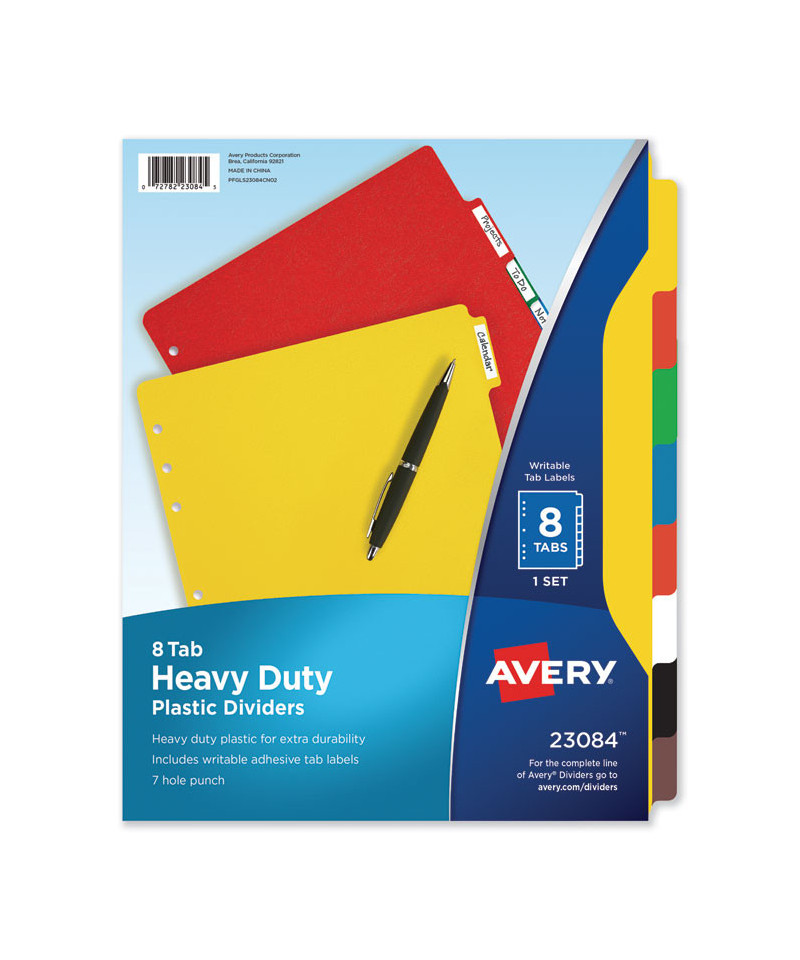 When you need lasting organization, call in a real heavy hitter. These heavy duty plastic dividers provide impressive durability even in the face of frequent use. An assortment of bright colors offers eye-catching convenience when you're looking for the right section, and included white self-adhesive labels let you add custom identification to the tabs. Each divider is seven-hole punched for use in standard three-ring binders or other multi-ring binders. These heavy helpers are virtually indestructible, so you'll be glad to have them at your side.