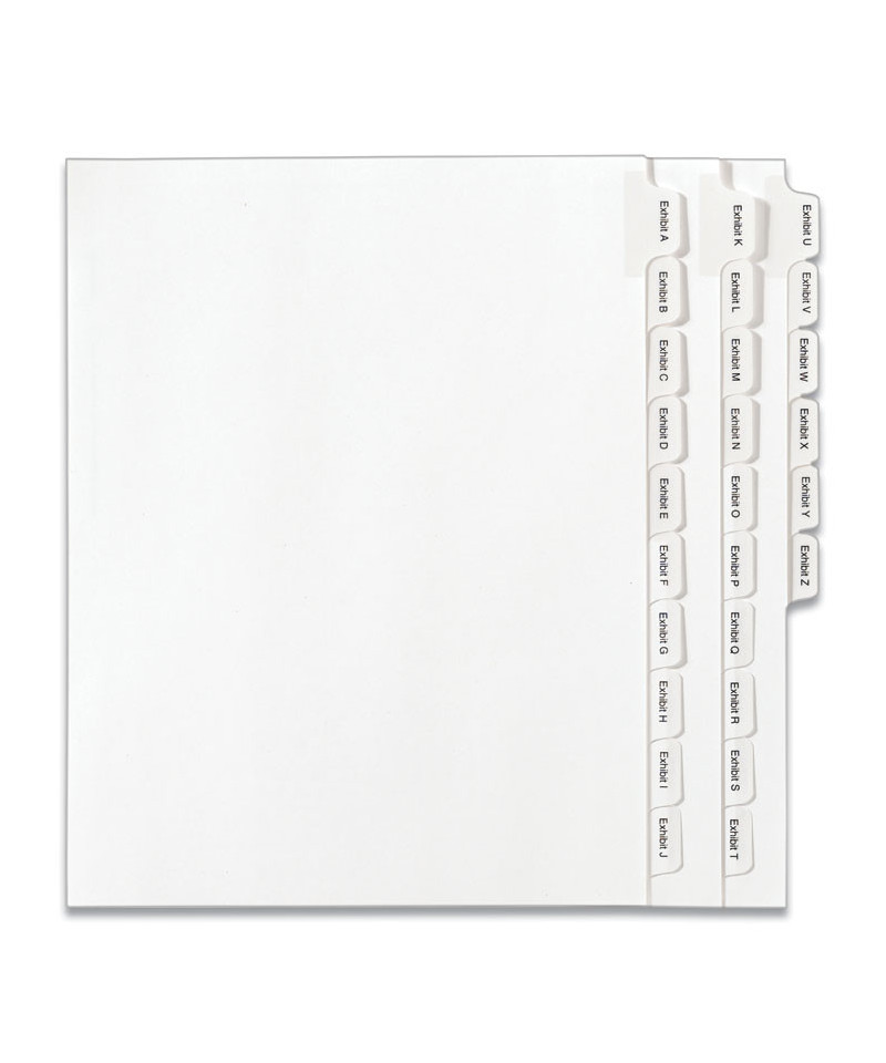 Preprinted Legal Exhibit Side Tab Index Dividers, Allstate Style, 26-Tab, Exhibit A to Exhibit Z, 11 x 8.5, White, 1 Set