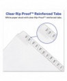 Use these dividers to organize index briefs, legal exhibits, mortgage documentation files and more. The crisp and clean white paper stock dividers give files a professional appearance. The durable Rip Proof™ reinforced tabs are preprinted on both sides so information can be located easily. The unpunched binding edges mean these indexes can fit practically any binding system.