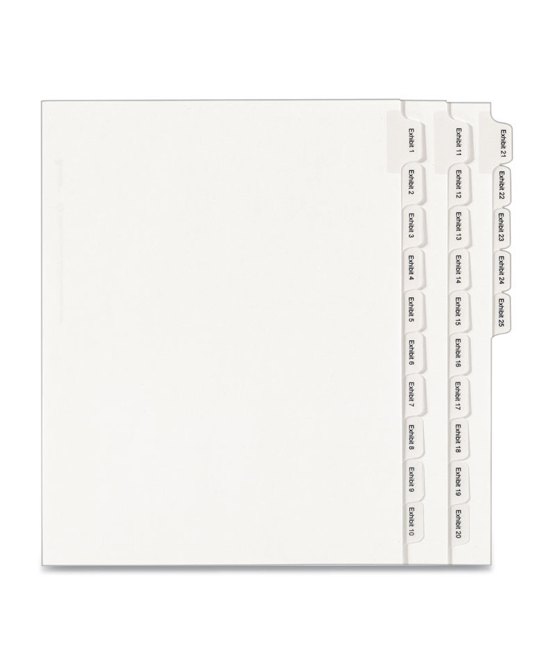 Use these dividers to organize index briefs, legal exhibits, mortgage documentation files and more. The crisp and clean white paper stock dividers give files a professional appearance. The durable Rip Proof™ reinforced tabs are preprinted on both sides so information can be located easily. The unpunched binding edges mean these indexes can fit practically any binding system.