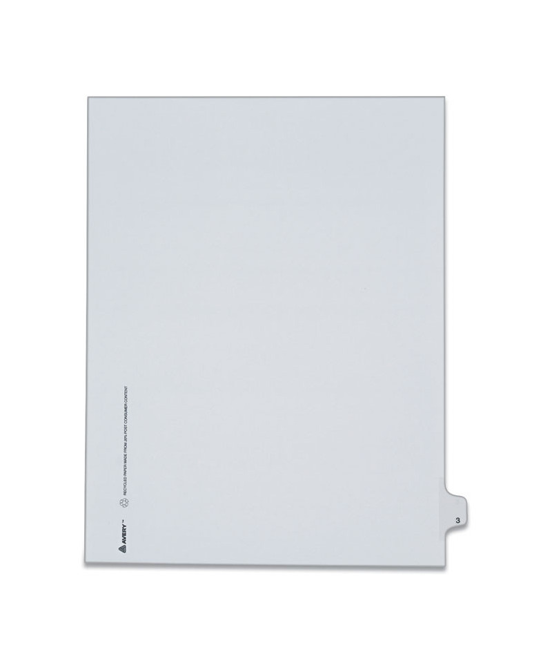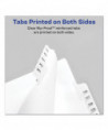 Use these dividers to organize index briefs, legal exhibits, mortgage documentation files and more. The crisp and clean white paper stock dividers give files a professional appearance. The durable Rip Proof™ reinforced tabs are preprinted on both sides so information can be located easily. The unpunched binding edges mean these indexes can fit practically any binding system.