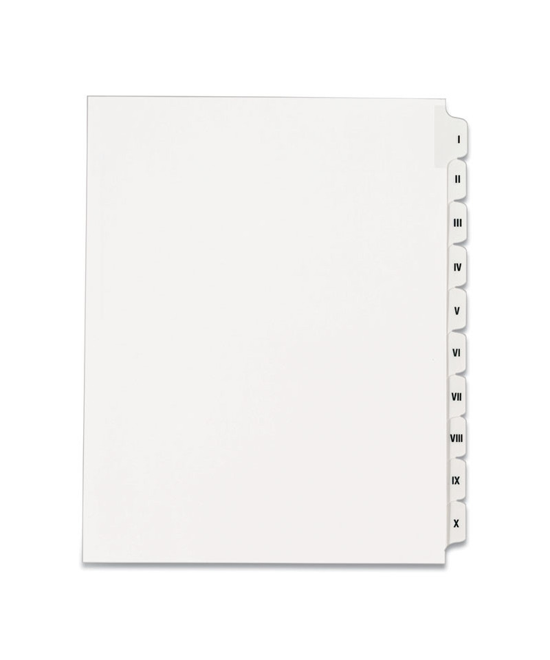 Preprinted Legal Exhibit Side Tab Index Dividers, Allstate Style, 10-Tab, I to X, 11 x 8.5, White, 1 Set