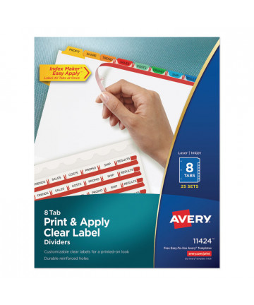 Whether you're organizing a single project or creating multiple sets, Index Maker® clear labels virtually disappear on divider tabs to give you a professional printed-on look. The Easy Apply label strip lets you label all tabs at once. Easy to customize with free templates from Avery Design & Print. Big Tab and Extra Wide selections offer greater convenience in office-wide references. Standard and mini size selections provide streamlined indexing in standard binders, planners and small personal binders. For laser and inkjet printers.