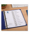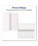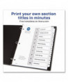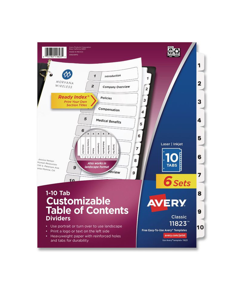 Sometimes finding information at a moment's notice seems like finding a needle in a haystack. These Ready Index® Table of Contents Dividers help you stay organized so you can locate important documents quickly and easily. They feature preprinted alphabetical or numerical tabs that are reinforced for durability and can be used in either landscape or portrait format. Using free templates from Avery Design & Print, you can customize the included title page and print in minutes. Organization and efficiency,— now that's sharp thinking.