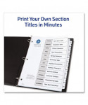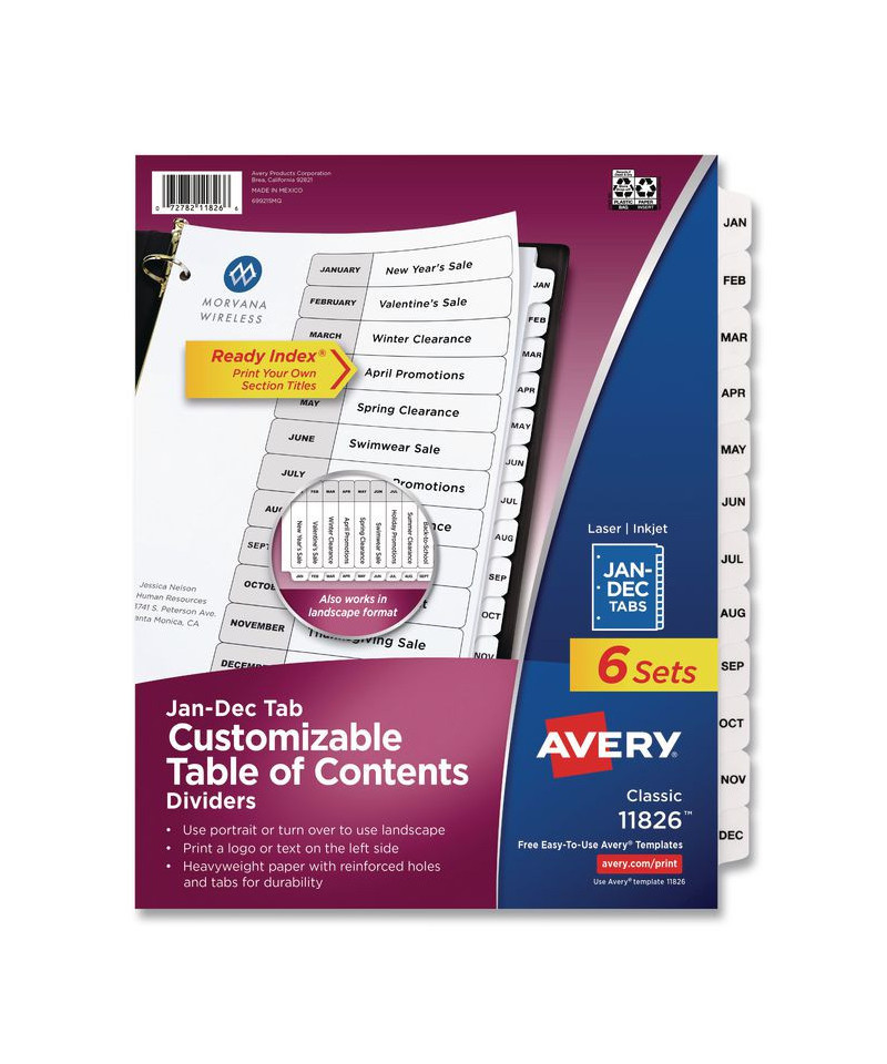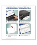 Sometimes finding information at a moment's notice seems like finding a needle in a haystack. These Ready Index® Table of Contents Dividers help you stay organized so you can locate important documents quickly and easily. They feature preprinted alphabetical or numerical tabs that are reinforced for durability and can be used in either landscape or portrait format. Using free templates from Avery Design & Print, you can customize the included title page and print in minutes. Organization and efficiency,— now that's sharp thinking.