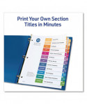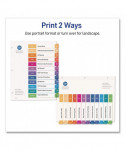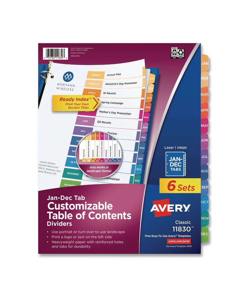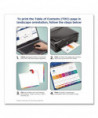Organized documentation makes a business run like a well-oiled machine. These Ready Index Table of Contents Dividers help you stay organized so you can locate documents quickly and efficiently. They feature preprinted multicolor tabs that can be displayed in either landscape or portrait format. Using free templates from Avery Design & Print you can customize the included table of contents page and print in minutes. Organization and efficiency-makes life better for your business. For laser and inkjet printers.