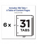 Customizable Table of Contents Ready Index Multicolor Dividers, 31-Tab, 1 to 31, 11 x 8.5, White, 6 Sets