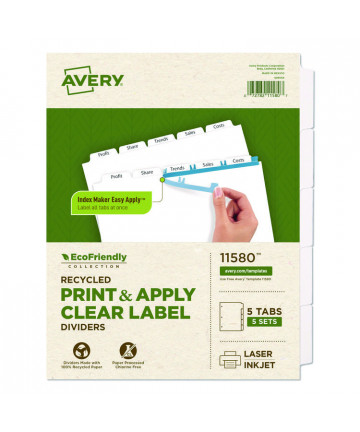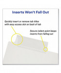 Tabs provide 50% more writing space than standard tabs. Tab design allows easy insertion and removal, but keeps insert securely in place. Made of durable translucent plastic. Easily customize with free templates from Avery Design & Print. Handwrite or print inserts on laser and inkjet printers.