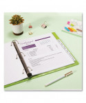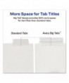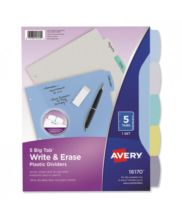 Sometimes good things do come in big packages. Big Tab™ Insertable Plastic Dividers offer extra convenience for your binder or notebook. The larger style insertable tabs accommodate inserts that you can print with sizeable fonts or more lines of text than on a typical insert for even more eye-catching power. Use free templates from Avery Design & Print to create professional-looking tabs. An easy-access notch at the top of the tab lets you slide inserts in and out with ease, while a secure indent point at the base of the tab keeps your insert from falling out. Translucent plastic offers a durable solution, so you can enjoy long-lasting organization of all your big ideas. Handwrite or print inserts on laser and inkjet printers.