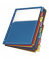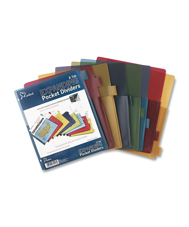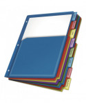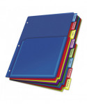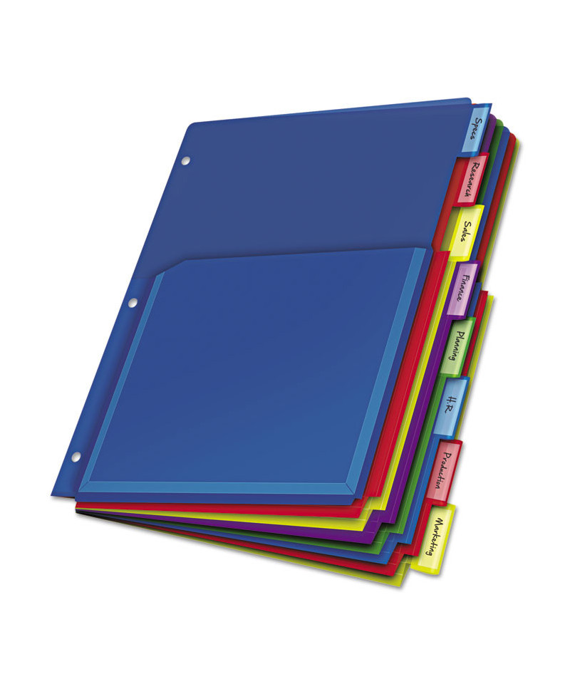 Up to 100 sheets fit into each of these extra-tough poly pockets. Large tabs are designed to provide ample room for titles, and paper inserts won't fall out. Paper tab inserts included. Scratch-resistant, non-transfer material is safe for all documents and photos. Dividers are three-hole punched to fit 3-ring binders.