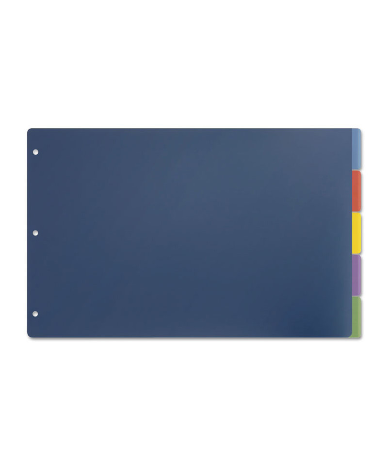 Extra-tough poly dividers hold up to active use, they will not fray or tear out of rings. Scratch-resistant, transfer-safe poly - will not damage photos or transfer inks or toners. Extra large tabs allow plenty of room for tab titles, adhesive labels included. Use with 11 x 17 sheets.