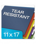 Extra-tough poly holds up to active use, no fraying or tearing. Scratch-resistant, transfer-safe poly won't damage photos/transfer inks/toners. Extra large tabs allow room for tab titles, adhesive labels included. Use with 11 x 17 sheets.