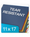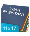 Extra-tough poly holds up to active use, no fraying or tearing. Scratch-resistant, transfer-safe poly won't damage photos/transfer inks/toners. Extra large tabs allow room for tab titles, adhesive labels included. Use with 11 x 17 sheets.