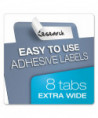 Extra-tough poly dividers hold up to active use, they will not fray or tear out of rings. Scratch-resistant, transfer-safe poly - will not damage photos or transfer inks or toners. Extra large tabs allow plenty of room for tab titles, adhesive labels included. Use with 11 x 17 sheets.