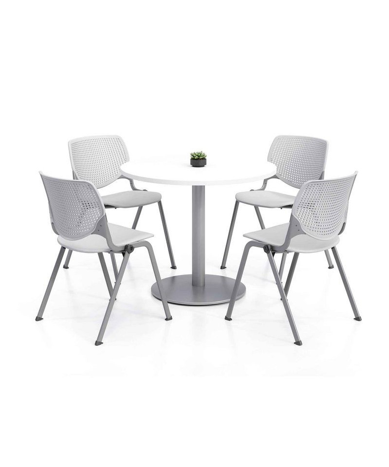 Pedestal Table with Four Light Gray Kool Series Chairs, Round, 36" Dia x 29h, Designer White