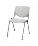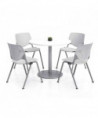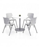 Contemporary and comfortable breakroom/cafeteria furniture. Table and 4 chair set. Table has a 1.25" thick high-pressure laminate top that's durable and easy to clean. The top has an attractive edge that won't crack or peel. The solid cast iron round base has leveling glides to prevent the table from wobbling on uneven floors. The base is made of durable cast iron with a 3" diameter column and is made of 16-gauge steel. The top and base are all shipped in one box. Easy to assemble. The chair has an "easy to clean" polypropylene seat and back. The ergonomic perforated back allows for enhanced circulation, while the radius conforms to your back for maximum comfort. The chair offers a contoured extra wide seat pan and a 400 lb. weight capacity to provide comfort and accommodate all sizes. The oval frame is made of 15-gauge steel with silver powder-coat. The 2300 is one of most complete stack chairs on the market. It's just plain.... KOOL. Tables shipped unassembled. Chairs shipped assembled.