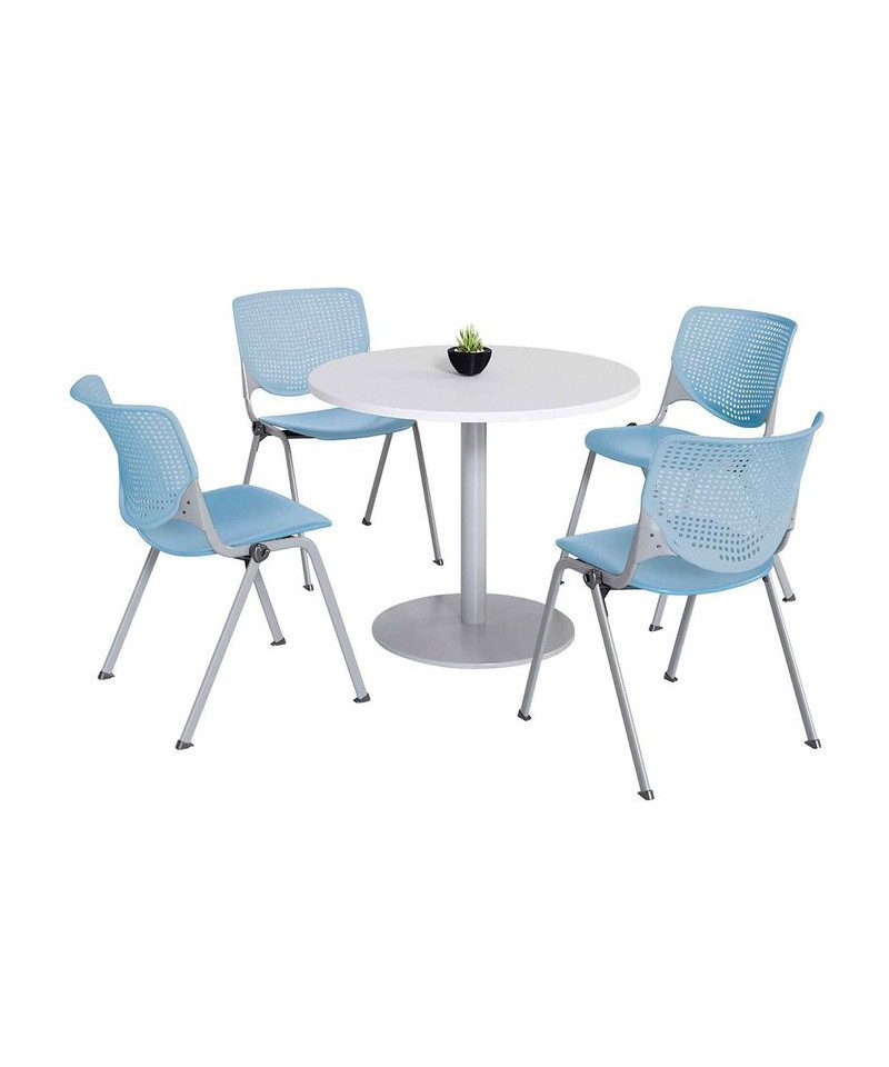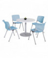 Pedestal Table with Four Sky Blue Kool Series Chairs, Round, 36" Dia x 29h, Designer White
