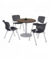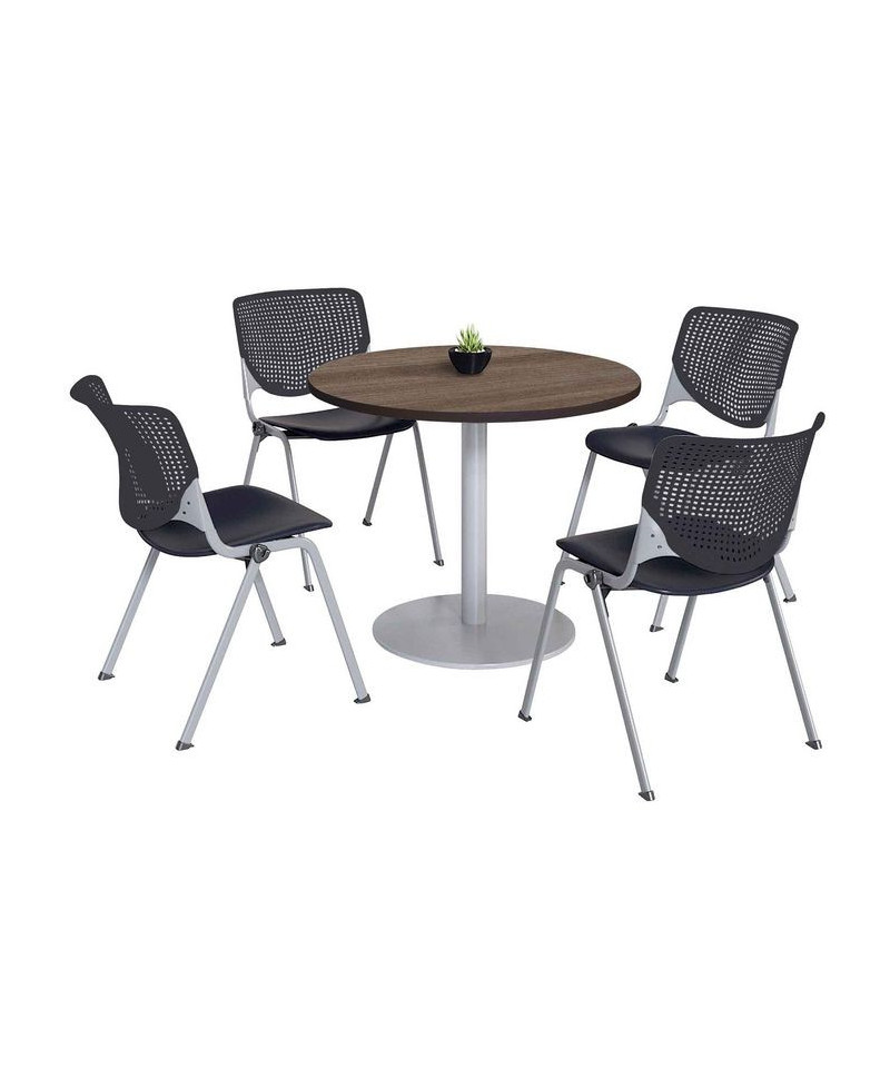 Pedestal Table with Four Black Kool Series Chairs, Round, 36" Dia x 29h, Studio Teak