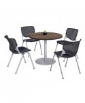 Contemporary and comfortable breakroom/cafeteria furniture. Table and 4 chair set. Table has a 1.25" thick high-pressure laminate top that's durable and easy to clean. The top has an attractive edge that won't crack or peel. The solid cast iron round base has leveling glides to prevent the table from wobbling on uneven floors. The base is made of durable cast iron with a 3" diameter column and is made of 16-gauge steel. The top and base are all shipped in one box. Easy to assemble. The chair has an "easy to clean" polypropylene seat and back. The ergonomic perforated back allows for enhanced circulation, while the radius conforms to your back for maximum comfort. The chair offers a contoured extra wide seat pan and a 400 lb. weight capacity to provide comfort and accommodate all sizes. Th