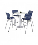 Contemporary and comfortable breakroom/cafeteria furniture. Table and 4 barstool set. This pedestal table has a 1.25" thick high-pressure laminate top that's durable and easy to clean. The top has an attractive edge that won't crack or peel. The solid cast iron round base has leveling glides to prevent the table from wobbling on uneven floors. The steel column has a 3" diameter and is made of 16-gauge steel. The top and base are all shipped in one box. Easy to assemble. The barstool has an easy to clean polypropylene seat and back. The ergonomic perforated back allows for enhanced circulation, while the radius conforms to your back for maximum comfort. The chair offers a contoured extra wide seat pan and a 400-lb weight capacity to provide comfort and accommodate all sizes. The oval frame is made of 15-gauge steel with silver powder-coat. The 2300 is one of most complete stack chairs on the market. It's just plain.... KOOL. Tables shipped unassembled. Chairs shipped assembled.