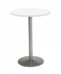 Contemporary and comfortable breakroom/cafeteria furniture. Table and 4 barstool set. This pedestal table has a 1.25" thick high-pressure laminate top that's durable and easy to clean. The top has an attractive edge that won't crack or peel. The solid cast iron round base has leveling glides to prevent the table from wobbling on uneven floors. The steel column has a 3" diameter and is made of 16-gauge steel. The top and base are all shipped in one box. Easy to assemble. The barstool has an easy to clean polypropylene seat and back. The ergonomic perforated back allows for enhanced circulation, while the radius conforms to your back for maximum comfort. The chair offers a contoured extra wide seat pan and a 400-lb weight capacity to provide comfort and accommodate all sizes. The oval frame