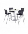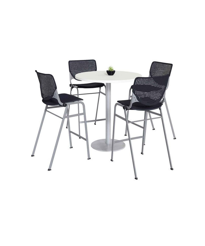 Pedestal Bistro Table with Four Black Kool Series Barstools, Round, 36" Dia x 41h, Designer White