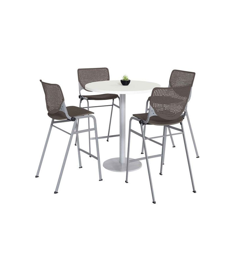 Pedestal Bistro Table with Four Brownstone Kool Series Barstools, Round, 36" Dia x 41h, Designer White
