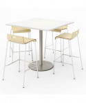 Pedestal Bistro Table with Four Natural Jive Series Barstools, Square, 36 x 36 x 41, Designer White