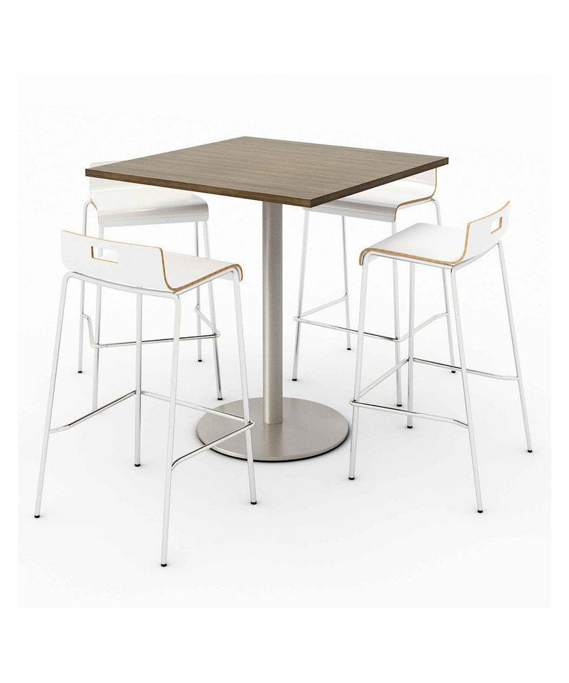 This bistro height pedestal table has a 1.25" thick high-pressure laminate top that's durable and easy to clean. The top has an attractive edge that won't crack or peel. The solid cast iron round base has leveling glides to prevent the table from wobbling on uneven floors. The column has a 3" diameter and is made of 16-gauge steel. The top and base are all shipped in one box. Easy to assemble. The chic, stylish and visually appealing stools are packed with versatility and function at affordable prices. Ideal for cafeterias, breakrooms, auditoriums and seminars or common areas. The durable frame is 0.75" round tubing made of 16-gauge steel. The attractive bent plywood shell has a high-pressure laminate finish for maximum durability and easy maintenance. The one-piece construction has a sle