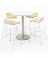 Pedestal Bistro Table with Four Natural Jive Series Barstools, Round, 36" Dia x 41h, Designer White