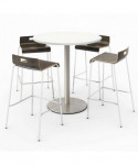 Pedestal Bistro Table with Four Espresso Jive Series Barstools, Round, 36" Dia x 41h, Designer White